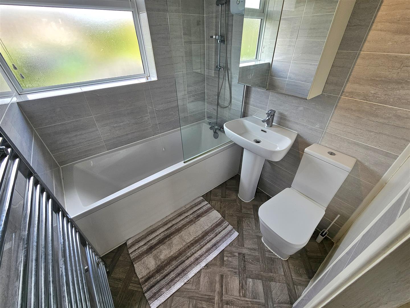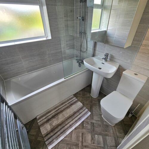 To the first floor we have three bedrooms two of which are great sized doubled with the principle room being to the rear with a large bank of quality built in storage. The third is a smaller room but still generous compared to some. The family bathroom is well fitted with a 3 piece suite including thermostatic shower over bath with glass screen.