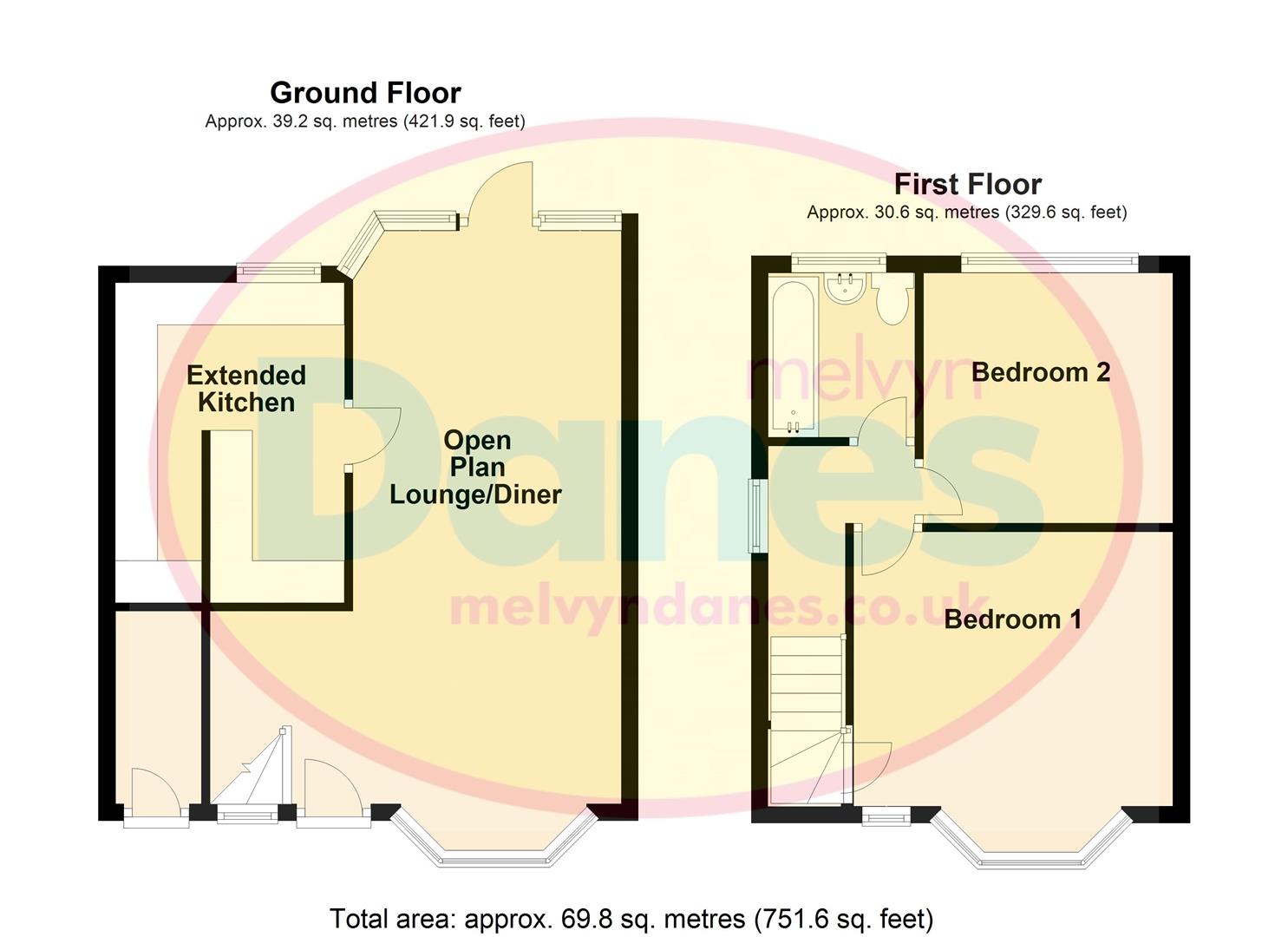 Comprising enclosed porch, open plan lounge/diner and extended kitchen to the ground floor. Upstairs there are two bedrooms and the bathroom.