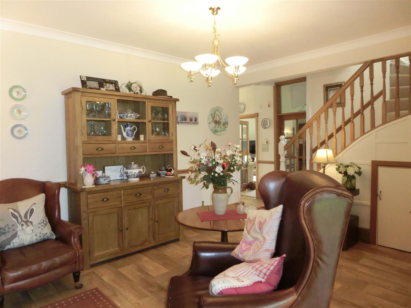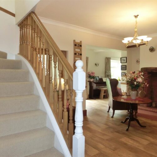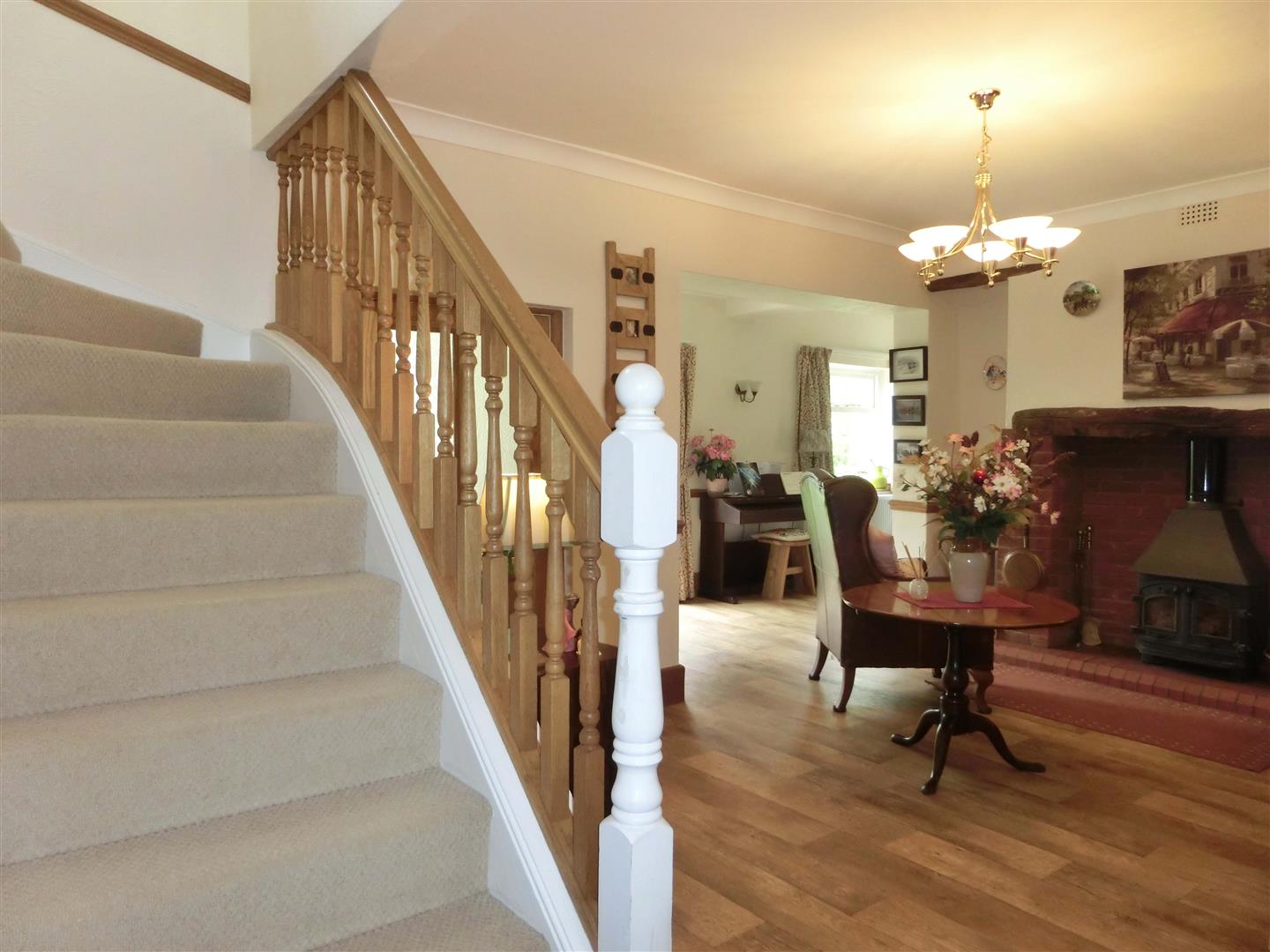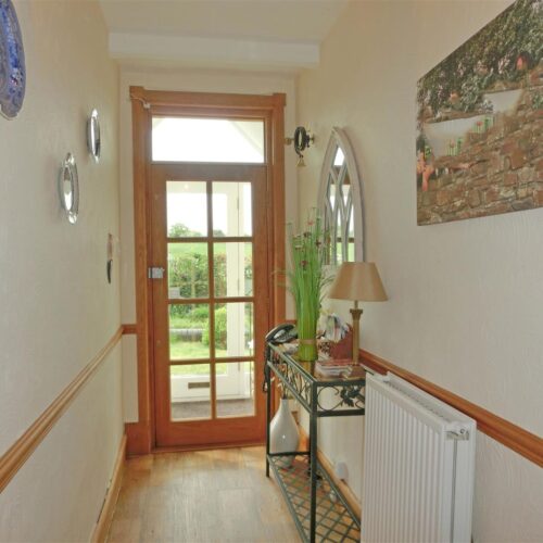 A paved footpath leads to glazed front door opening into a porch with glazed door into the hallway with strairs to the first floor and doors to the lounge, dining room, breakfast kitchen with utility, from the hall a snug area with log burner leads into the study and garden room.
