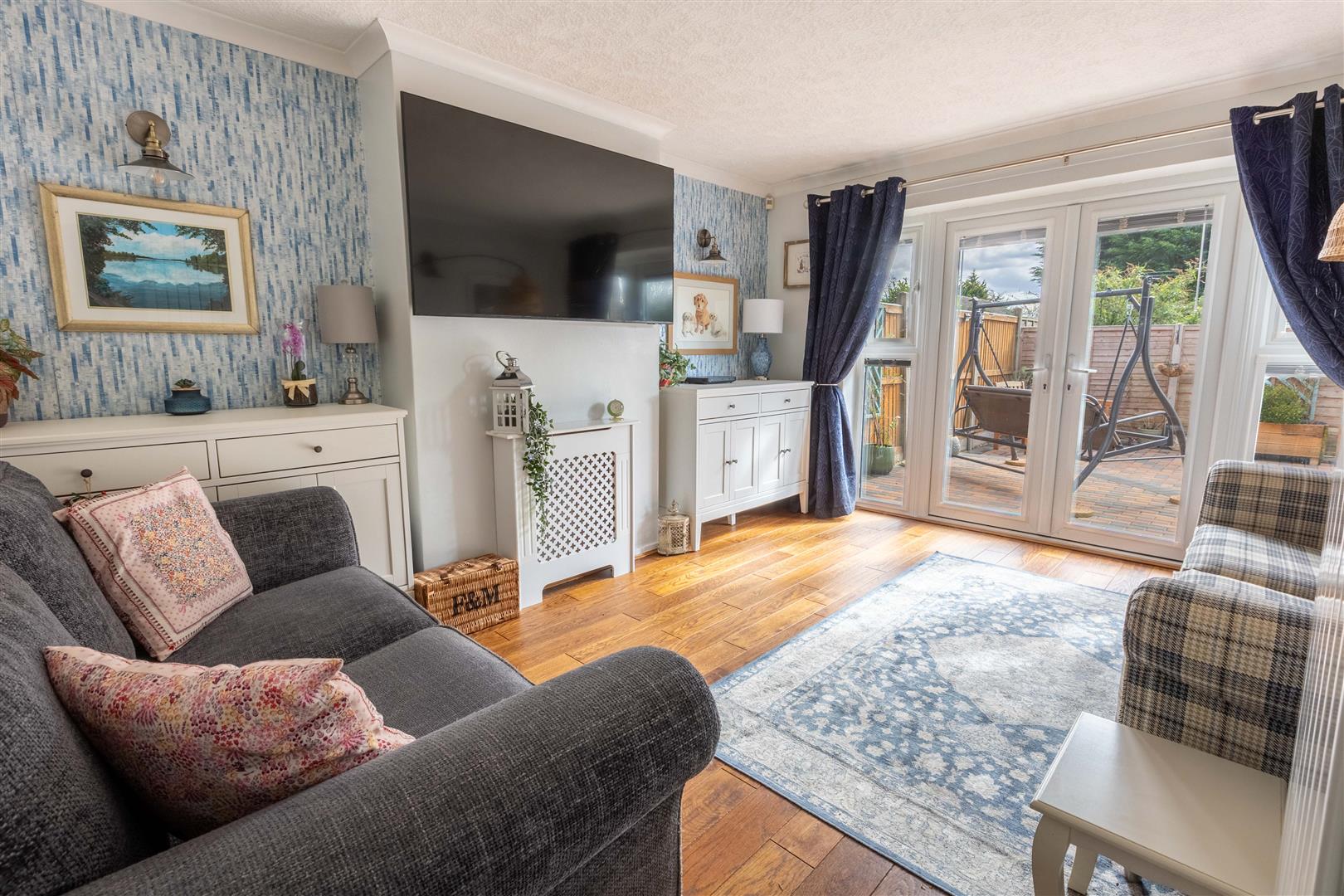 Enclosed porch, entrance hall, lounge with French doors onto the garden, fitted kitchen, two double bedrooms and a re fitted shower room.
