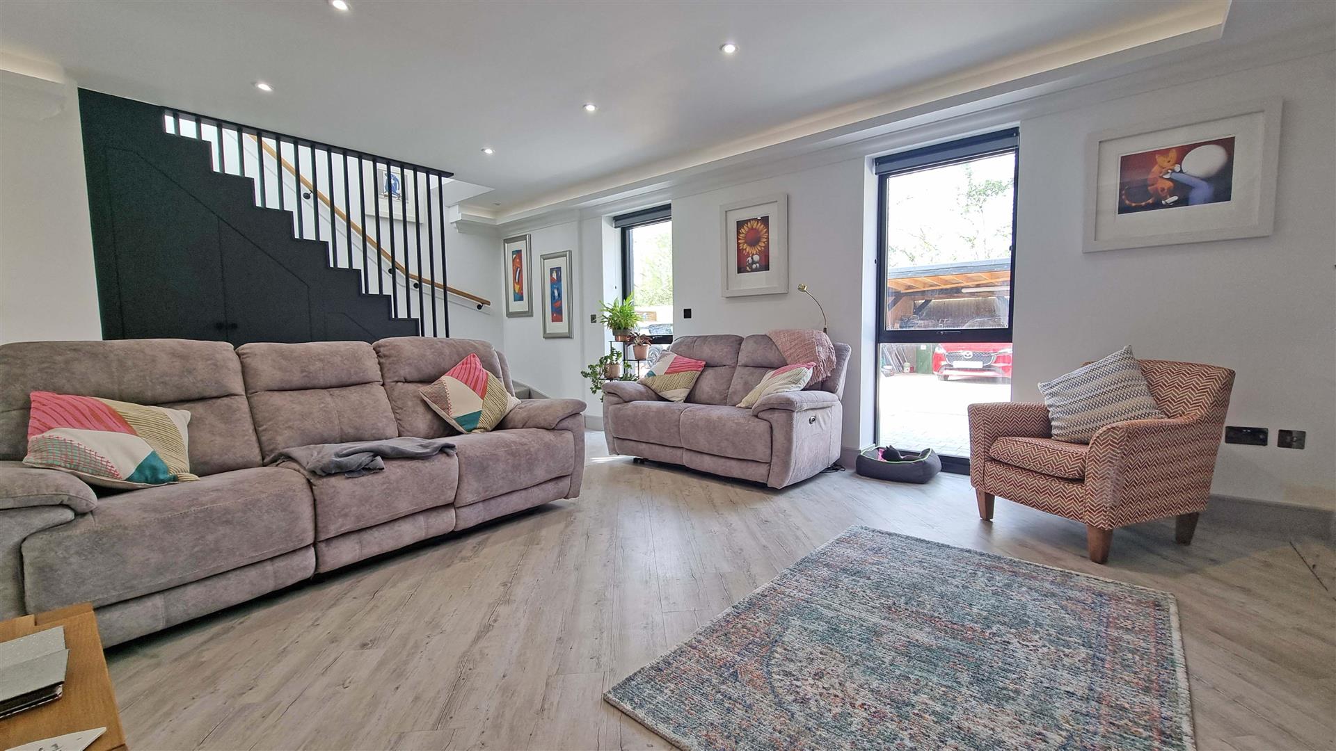 There is underfloor heating throughout with zone thermostatic control via an air scource heat pump and rooftop solar panels with battery storage combined to deliver a low carbon footprint as well as significantly reduced running costs with an A rated EPC.