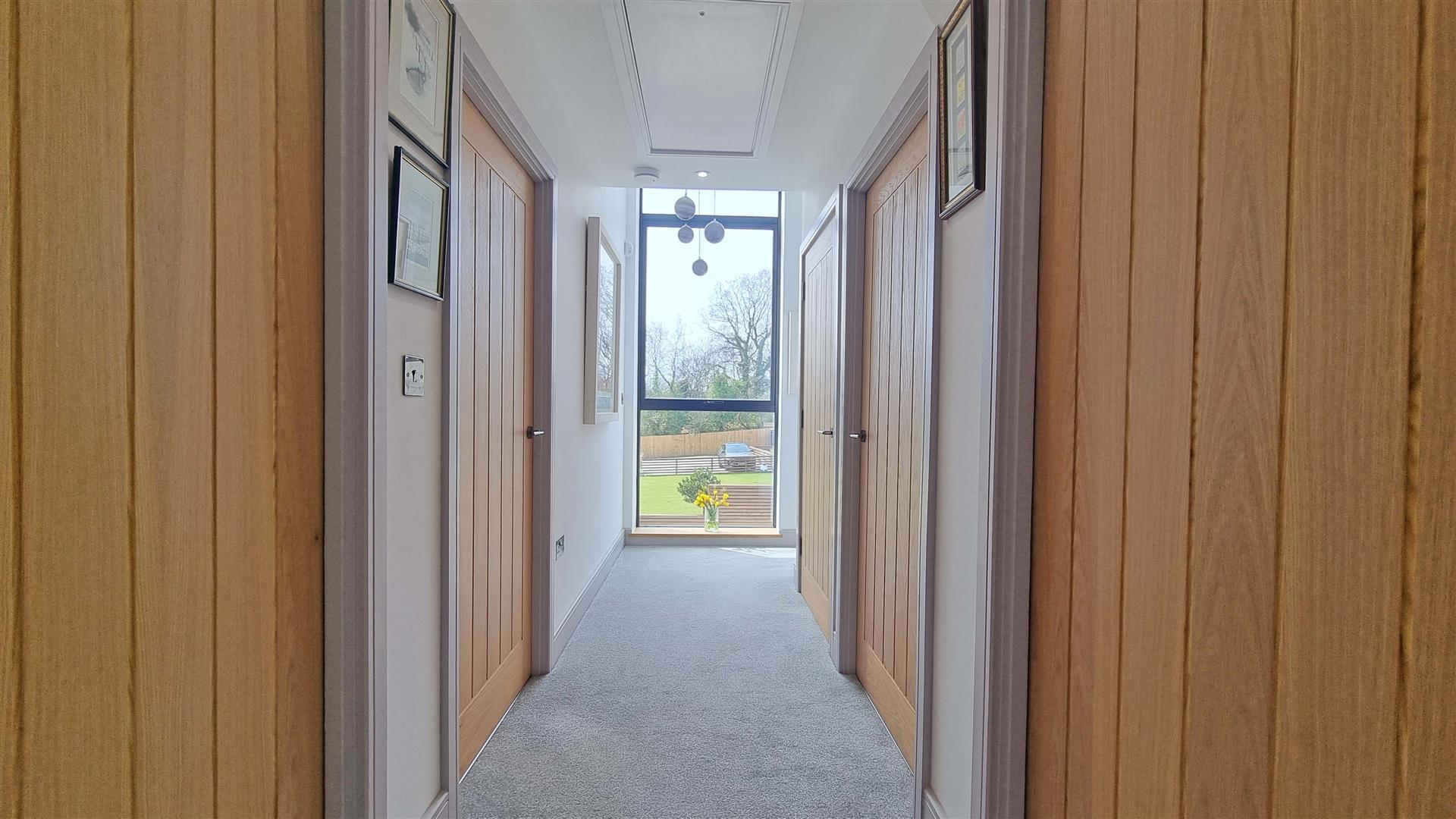 On the first floor landing with feature window and doors to four double bedrooms, master with en suite and family bacthroom.